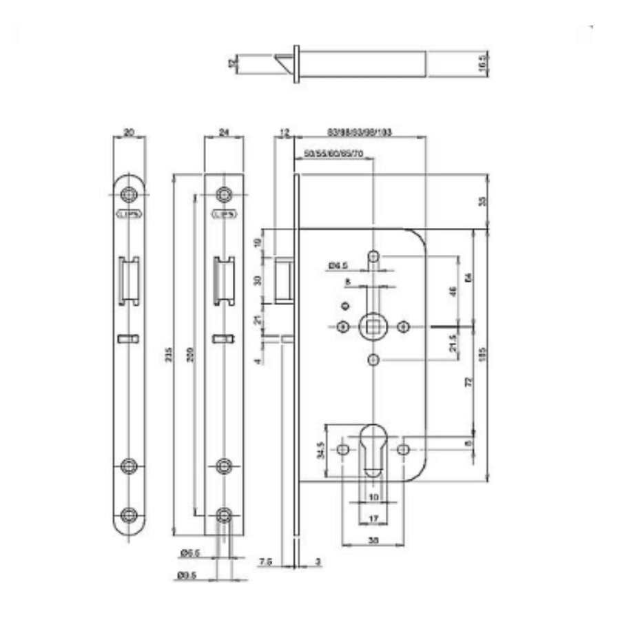 – Voorplaat: rechthoekig of afgerond: 235x24x3mm