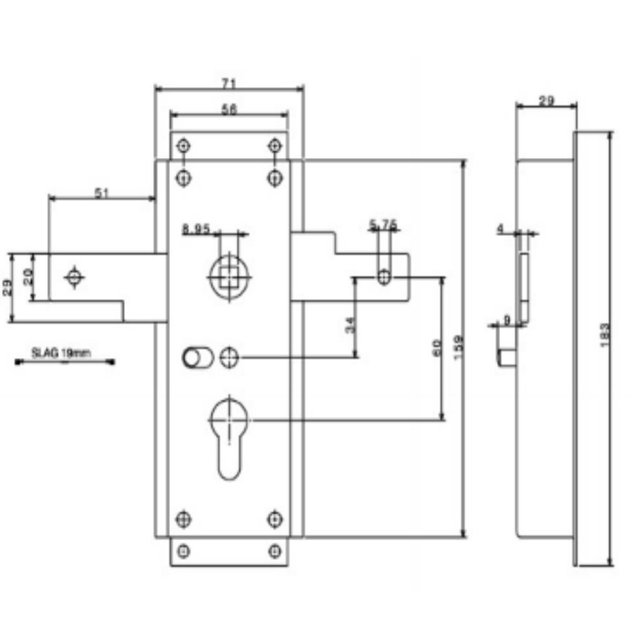 •Staal verzinkte slotkast
