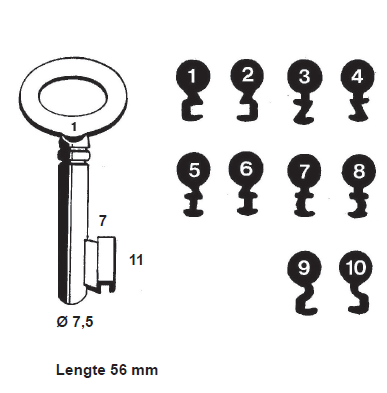 De nummering van deze serie loopt van 1 t/m 10. Het nummer staat op de sleutel.