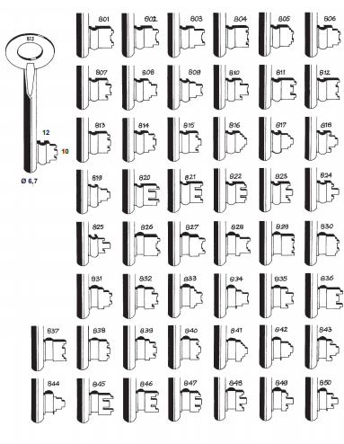 De nummering van deze sleutel loopt van 801 t/m 850. Het nummer staat op de sleutel.