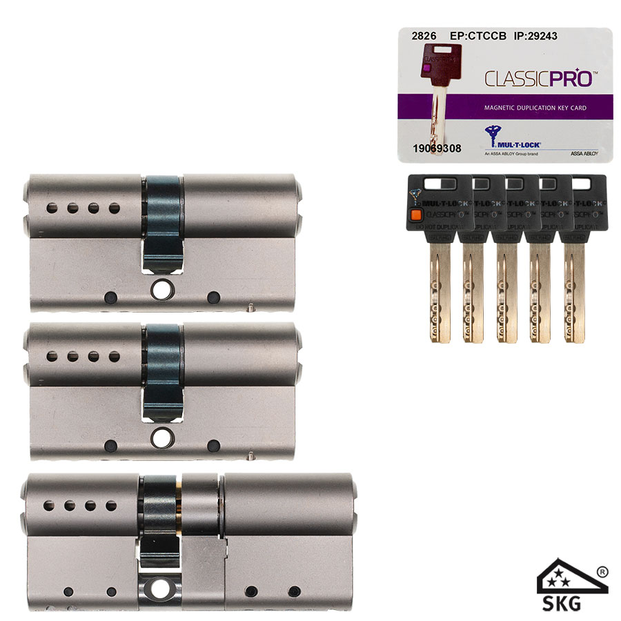 Gelijksluitende set van 3 Mul-T-Lock Classic Pro SKG★★★ cilinders.