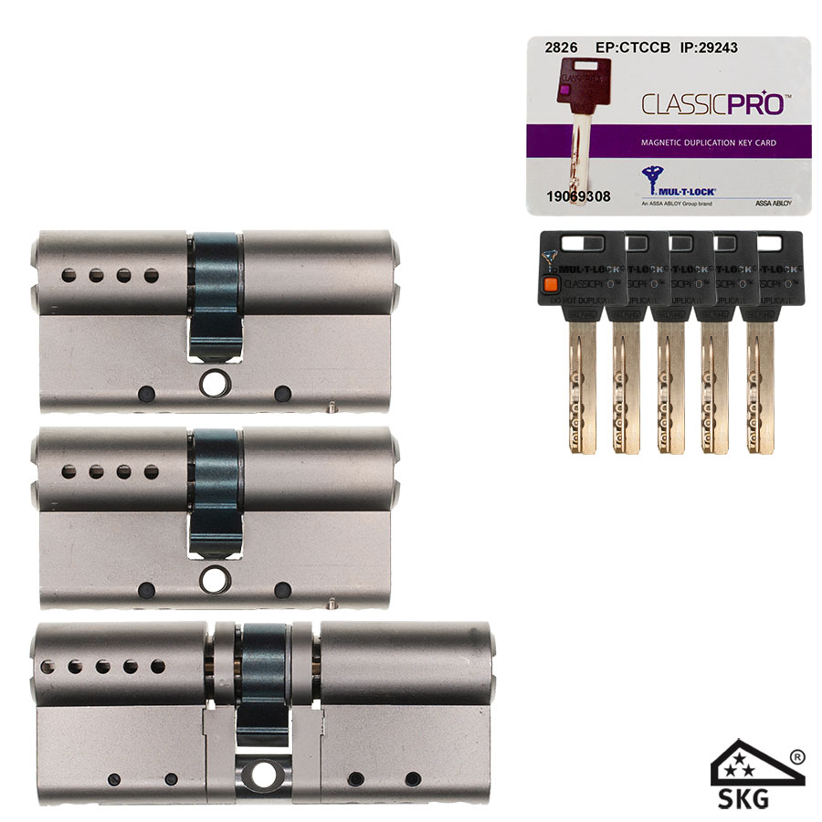 Gelijksluitende set van 3 Mul-T-Lock Classic Pro SKG★★★ cilinders.