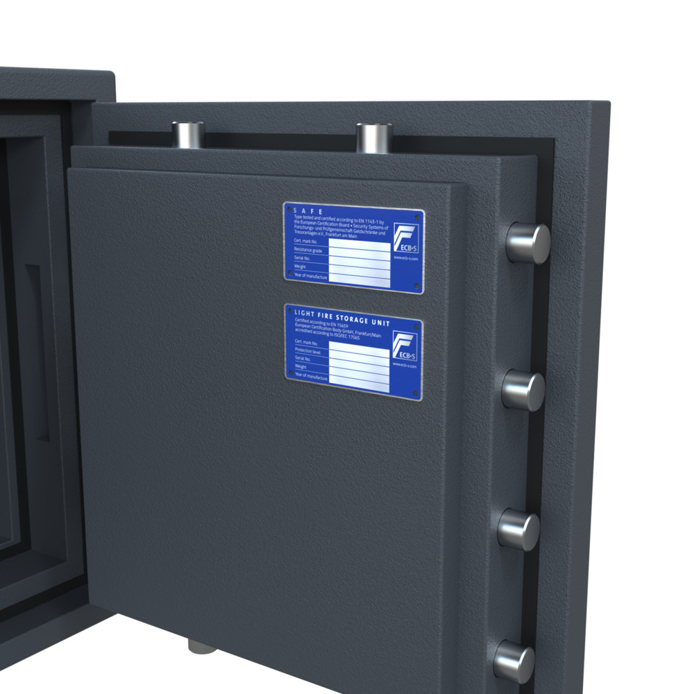 Inbraakwerendheid: EN 1143-1 Grade I (EUR 10.000 contant geld / EUR 20.000 kostbaarheden) ECB-S