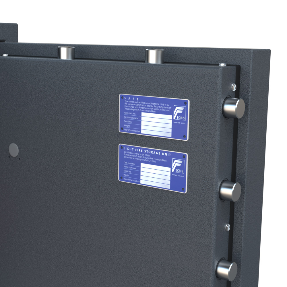 Inbraakwerendheid: EN 1143-1 Grade II (EUR 25.000 contant geld / EUR 50.000 kostbaarheden) ECB-S