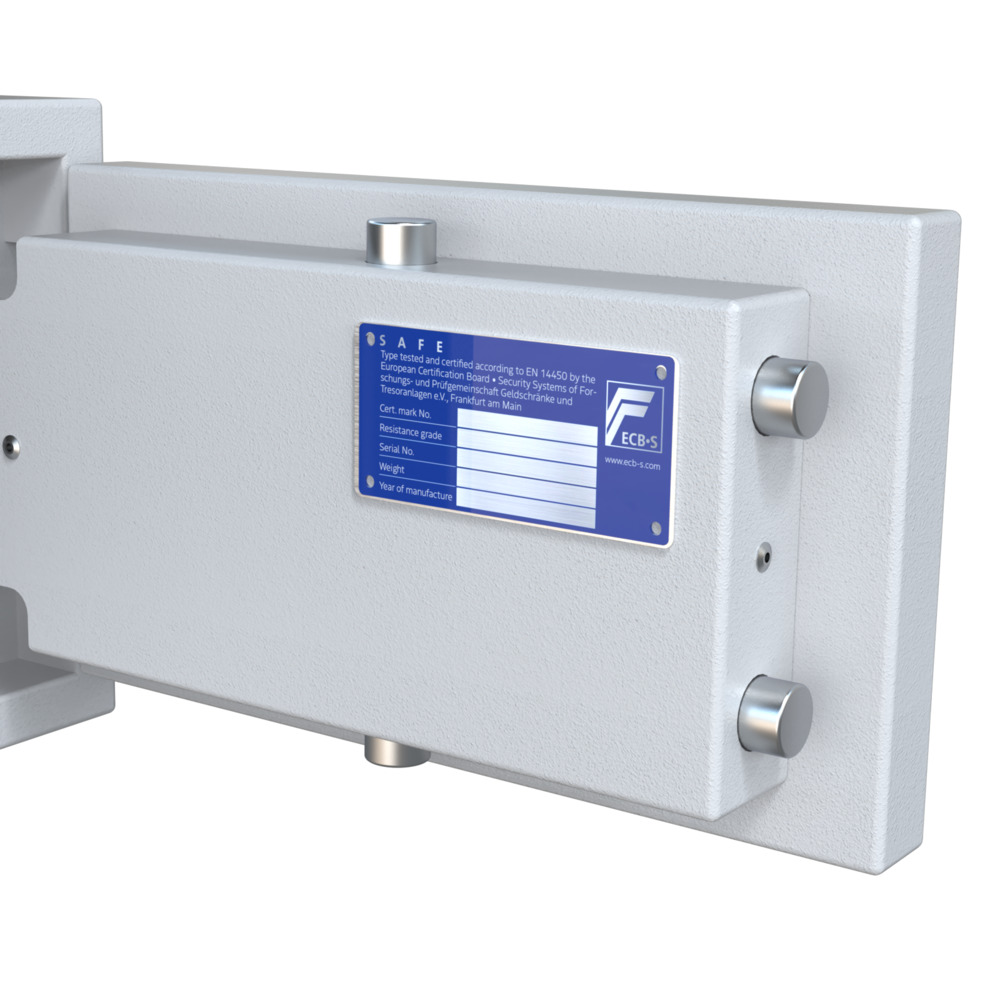 Inbraakwerendheid: EN 14450 S2 (EUR 5.000 contant geld / EUR 9.000 kostbaarheden) ECB-S