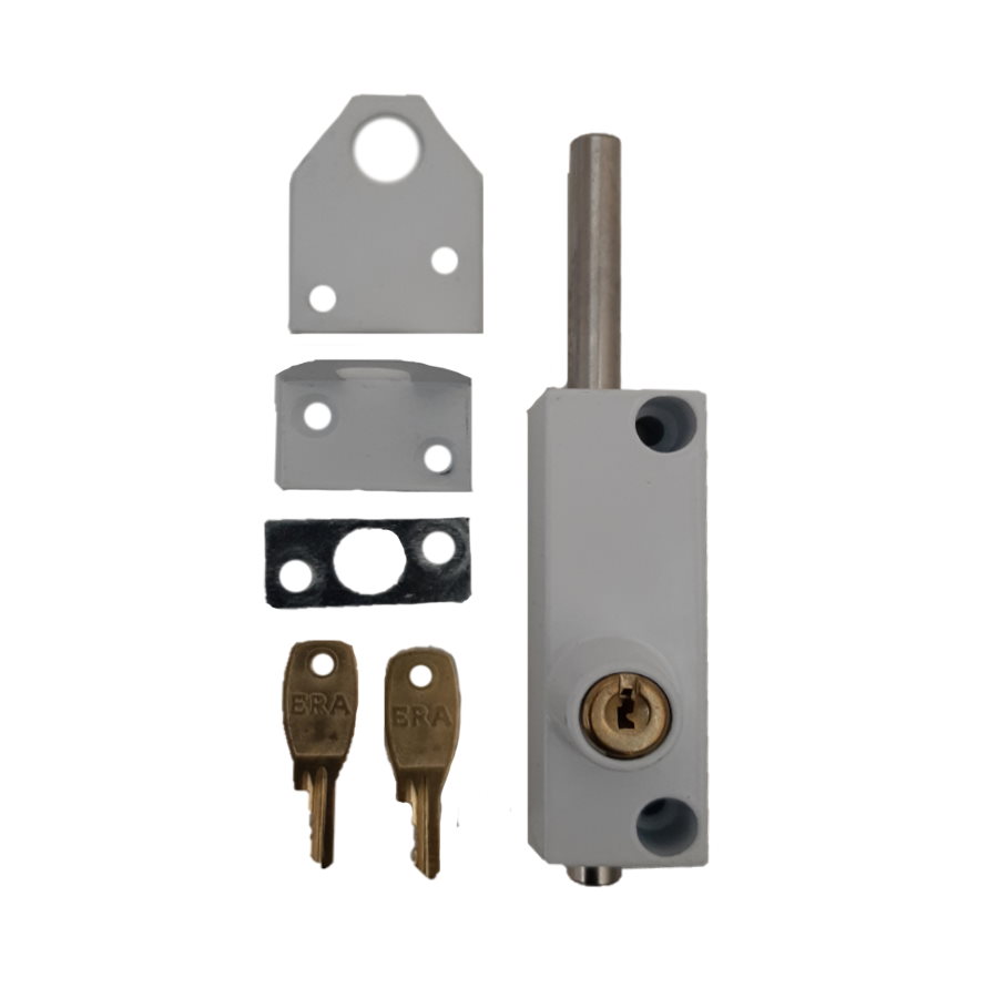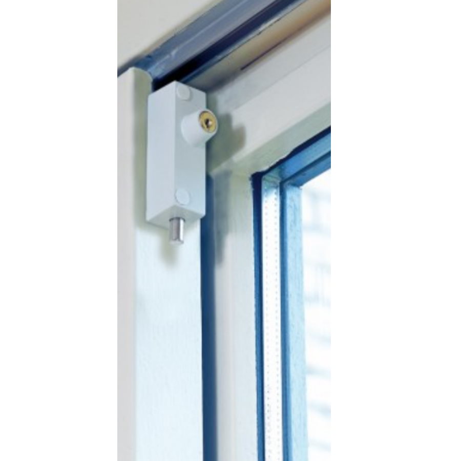 Dit is een universeelslot is een wit slot voor naar binnen- en buiten draaiende ramen en houten schuifpuien.