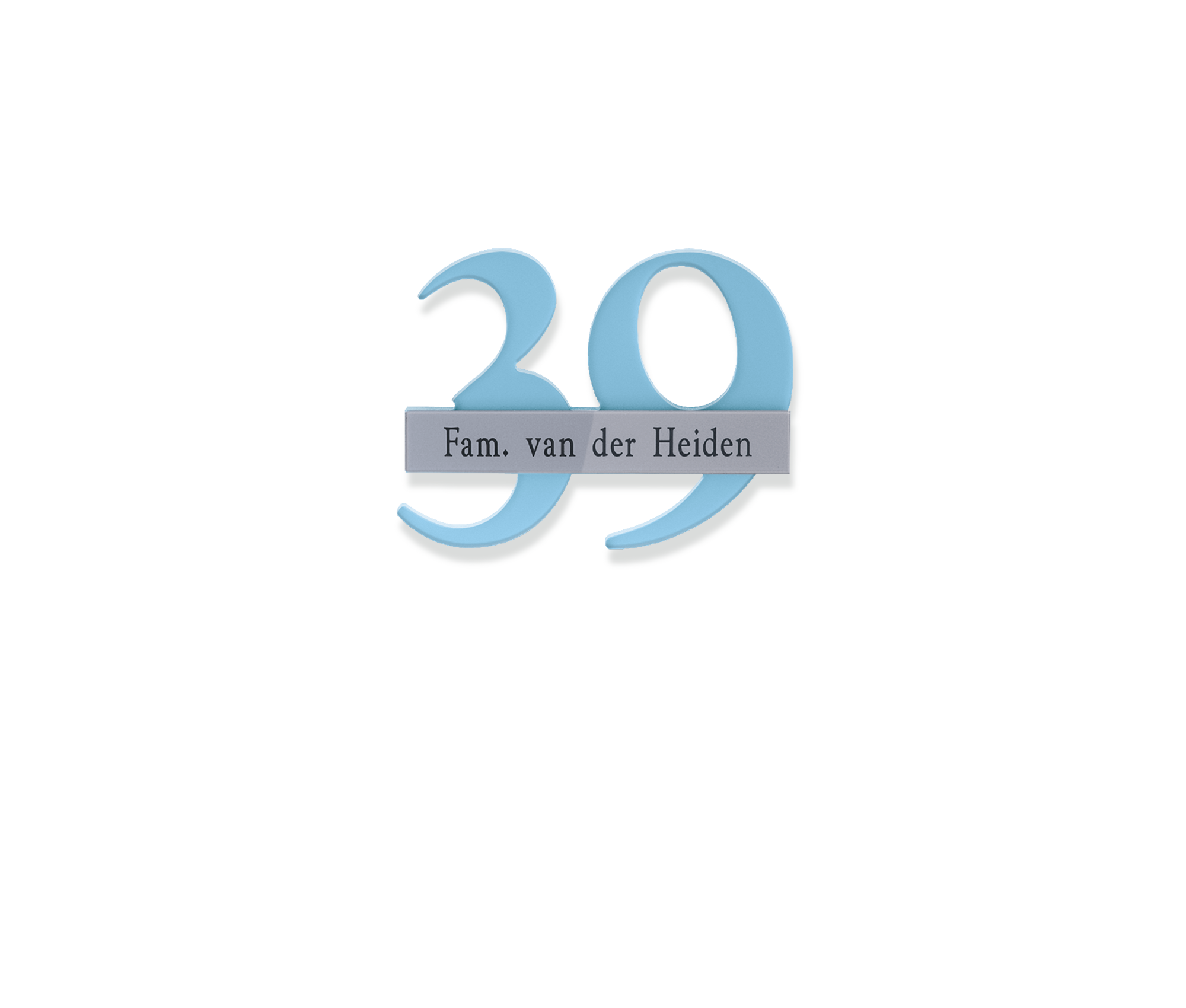 Maat: 20 cm hoog x (hangt af van het aantal cijfers)