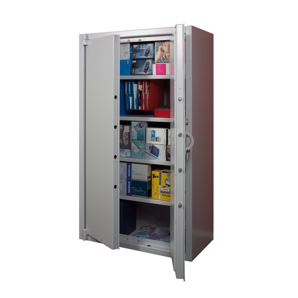 Standaardslot: EN 1300 gecertificeerd elektronisch slot (inclusief batterijen) + sleutelslot EN 1300 gecertificeerd