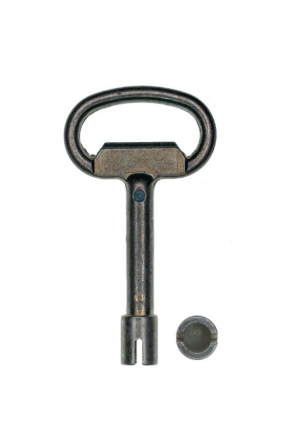 Doornsleutel van het merk STUV. De diameter van het uiteinde is 7,5mm. Het uiteinde heeft aan beide zeiden een insnijding van 7mm diep. Wordt vaak gebruikt bij o.a slagbomen e.o. (parkeer)paaltjes.