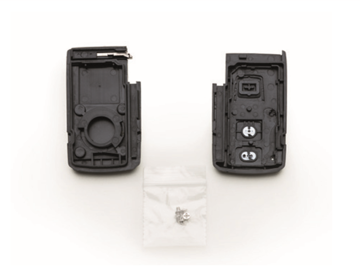 Stap 1. Open de behuizing van de bestaande autosleutel, (kijk goed of de behuizing exact hetzelfde is) haal de elektronica en startonderbreker(chip) er voorzichtig uit en plaats deze in de nieuwe klapsleutel.